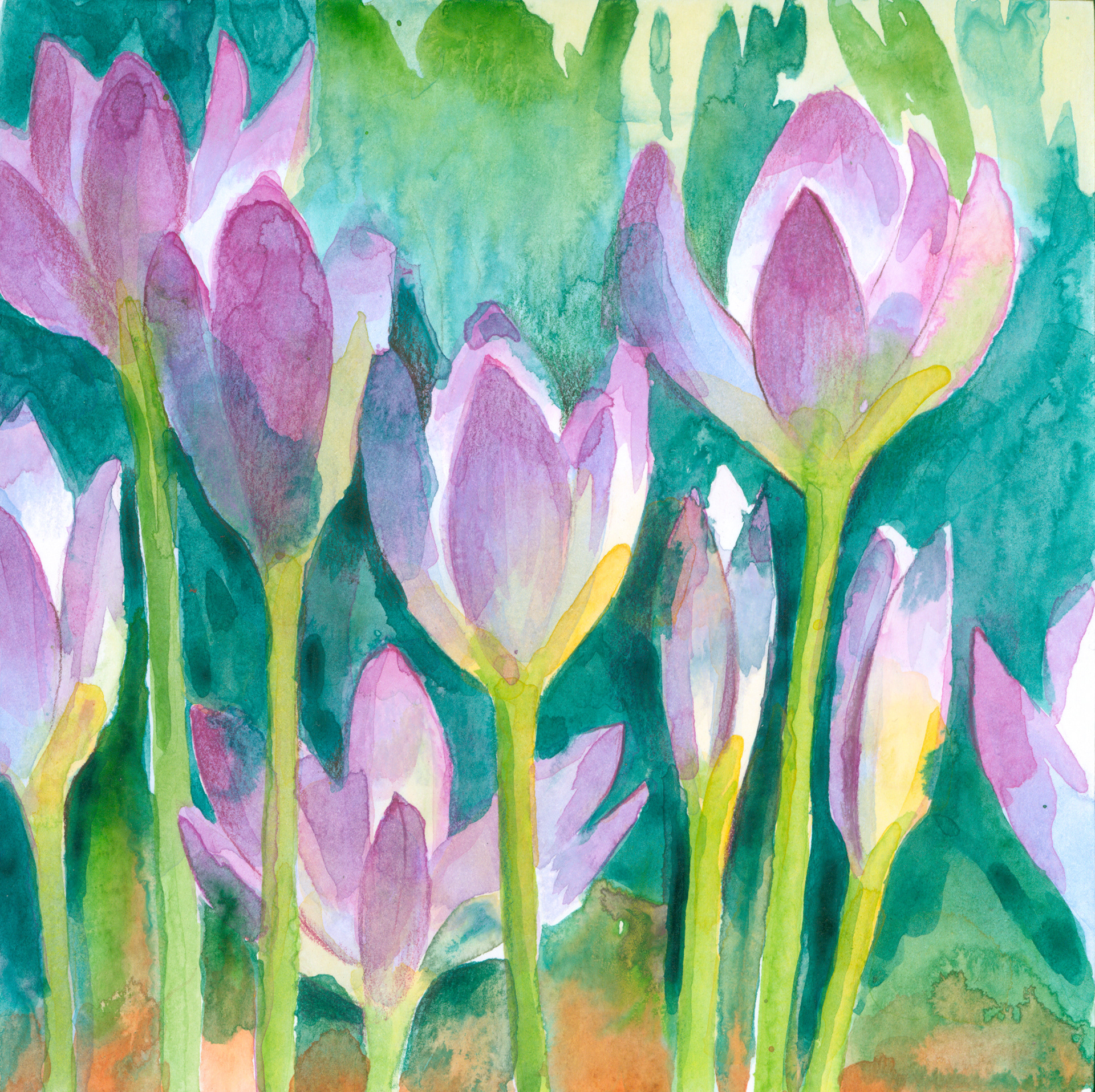 Acrylic washes on paper, mounted on wood panel